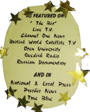 Brenda is available to work in Hotels, Casinos, Theatres, Pubs, Clubs, etc., throughout the UK. She will assist the Police and Private Investigators with Psychic Detection and Profiling work. And is happy to give Radio, TV and Press interviews.