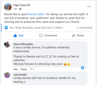 Brenda likes to do it 'like it used to be done'. No frills, just knowing who to go to and giving what she gets. This method ensures that a good spiritual connection is made. Brenda has gained an excellent widespread reputation demonstrating her spiritual skills to audiences across the UK and has impressed individual clients, both in the UK and various other countries, through the accuracy of her readings. She has made an impact upon many peoples lives and receives a phenominal amount of requests for private sittings.