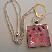 | Silver Tone 28mm square pendant on a 925 silver chain. Hand painted by unknown artist. The picture on this pendant was created using metallic media, the phot doe not show its true beauty. £12.50 inc UK p&p. Option: pinksquare |