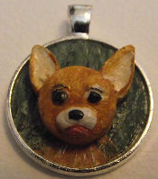 | 3D Dog 25mm pendant. One for the kids. Handmade clay dog face and original acrylic painted backdround by Brenda@Spooktacula. Signed. £7.99 inc UK p&p. Option: dogface1 |