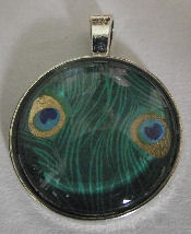| 25mm pendant wih glass dome print depicting peacock feather. Photo does not do it justice, vibrant piece. £6.99 inc UK P&P option: peapen1 |
