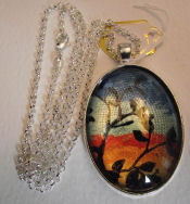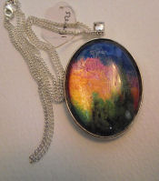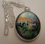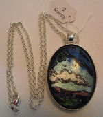 | Silver Tone 40mm diameter pendant on a 925 silver chain. Hand painted by unknown artist £12.50 inc UK p&p. Option: bluegoldround |
