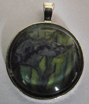 | 'Wolf Song' Beautiful pendant with various spiritual symbols. Inset with a ' one of a kind' 25mm hand painted glass dome picture of a wolf silhouette. Signed on back. £17.00 inc UK P&P . Option: wolfsong1 |