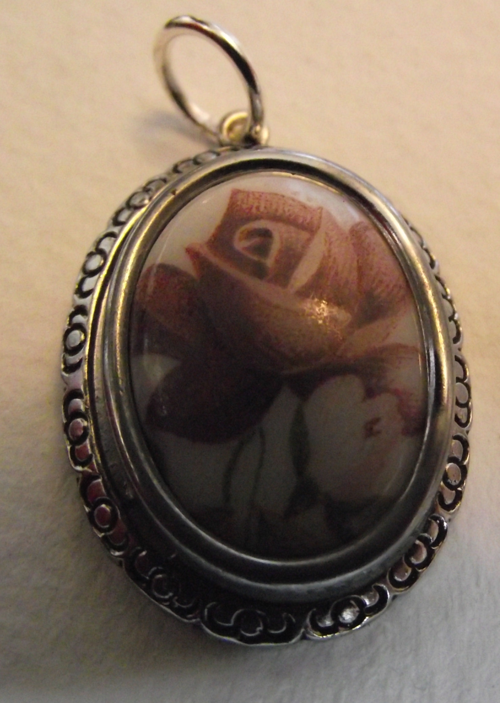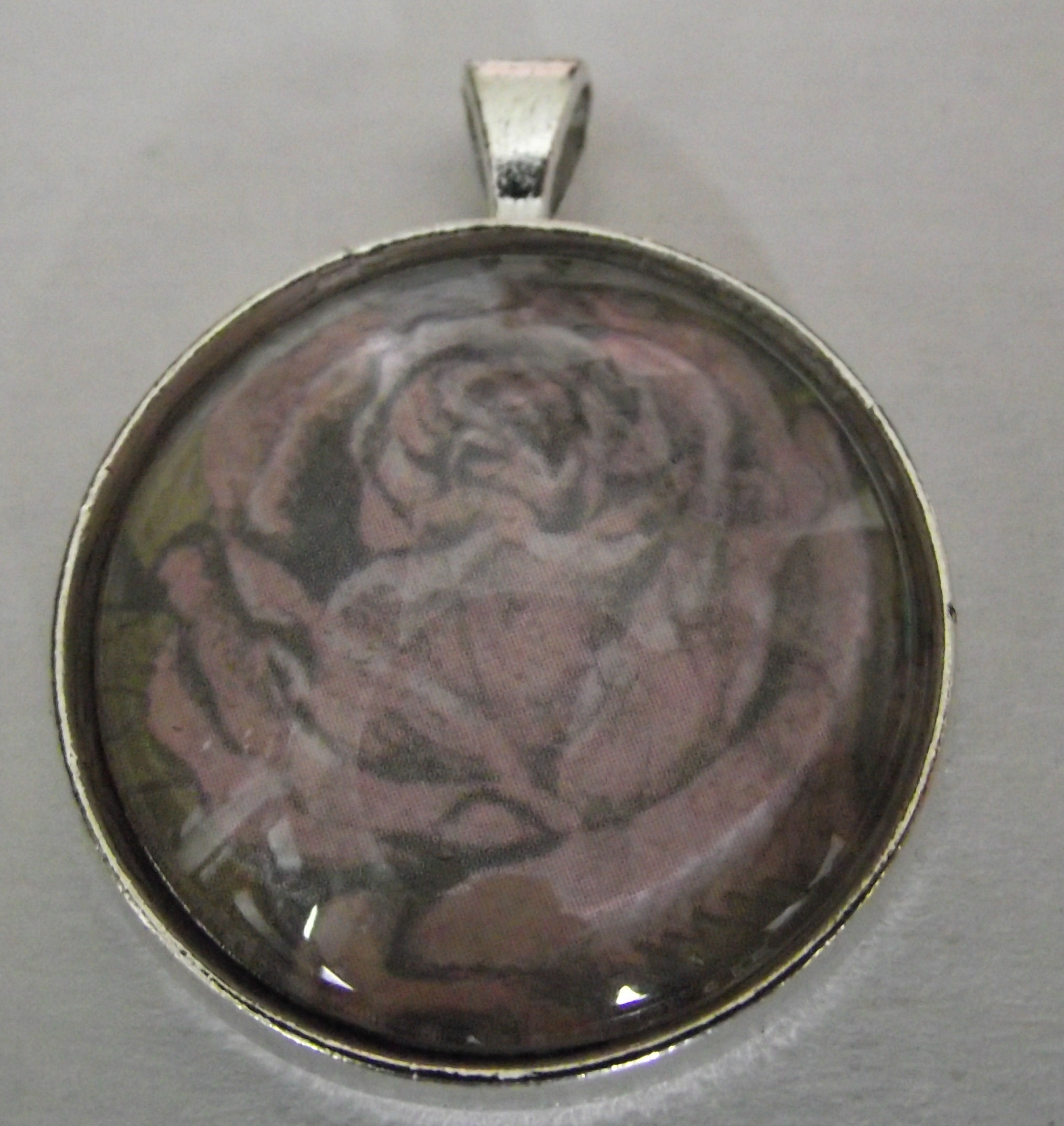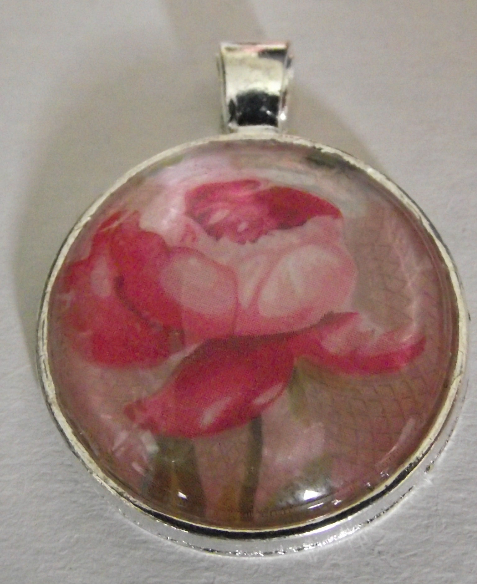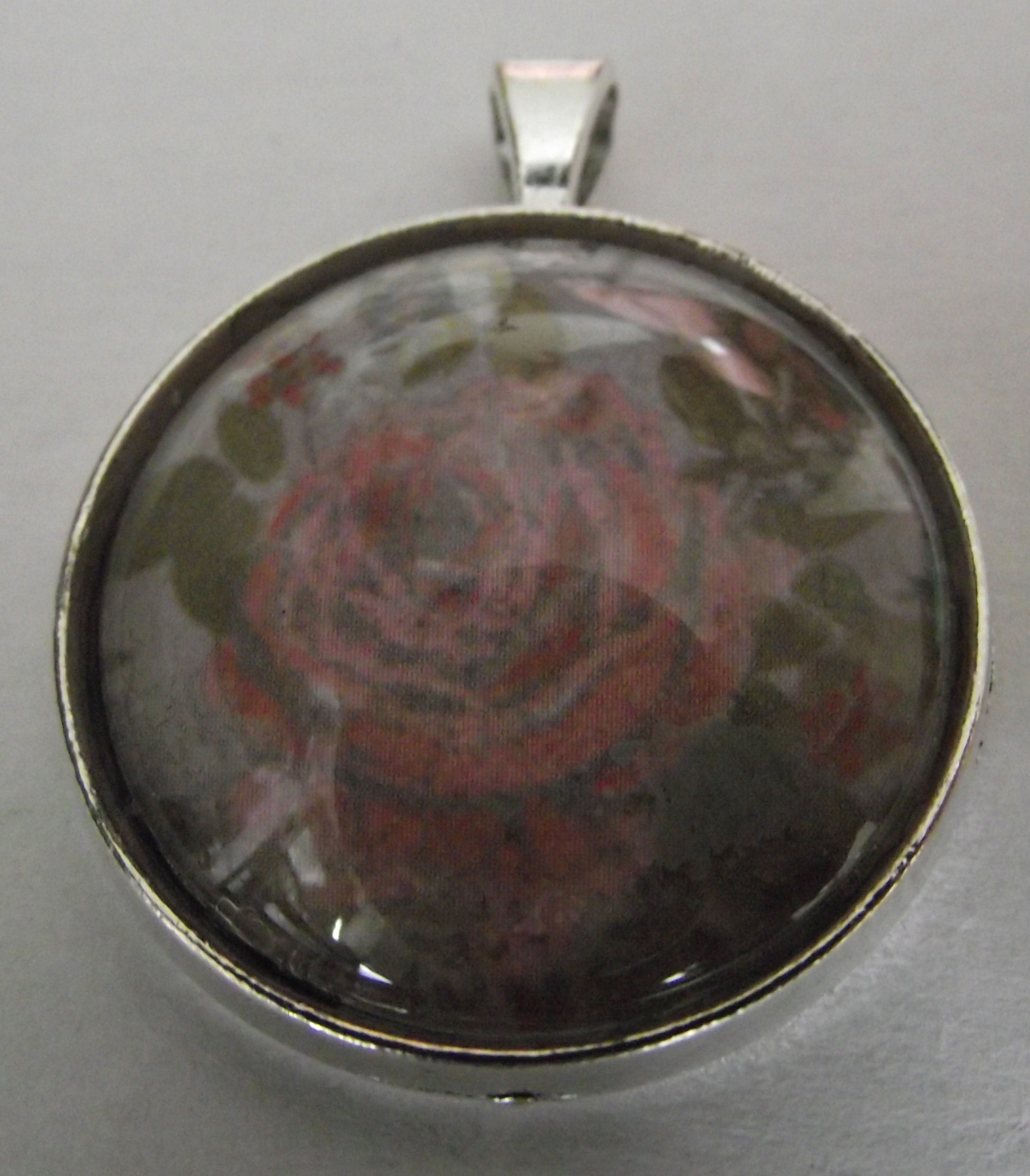 | 30mm pendant wih glass dome print depicting rose. Photo does not do it justice, subtle piece. £7.99 inc UK P&P option: rosepen3 |