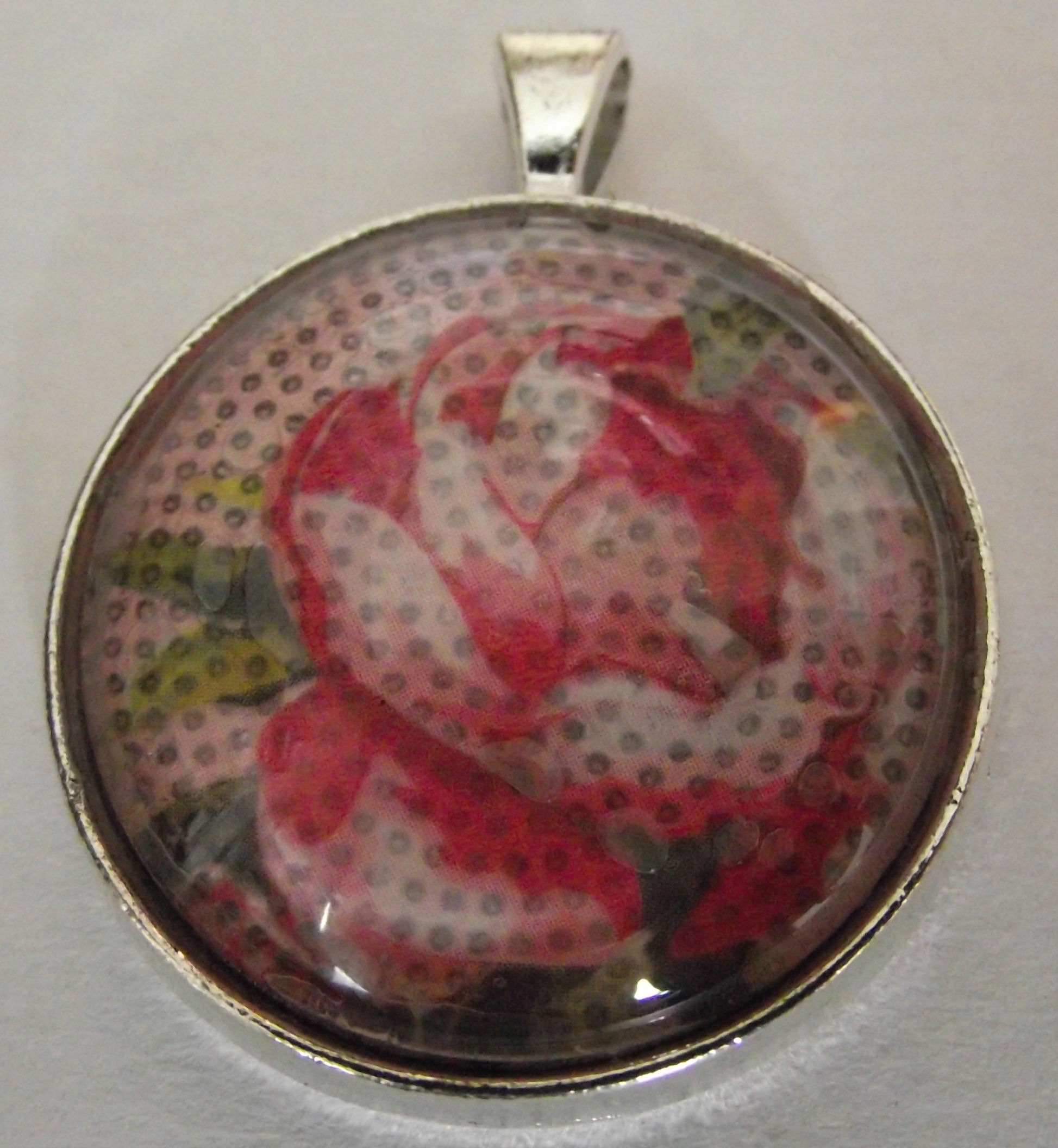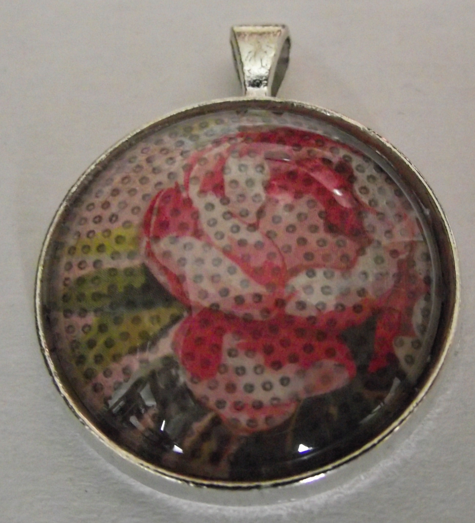 | 30mm pendant wih glass dome print depicting rose with stunning dot affect. Photo does not do it justice, vibrant piece. £8.99 inc UK P&P option: rosepen2 |
