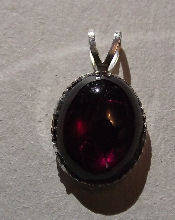 | Tiny 10mm x 8mm sterling silver pendant with real garnet cabochon. Comes complete with a delicate 925 chain, in a pretty voile pouch. Beautiful little item. £22.50 inc UK p&p. Option: ssgarnet1 |