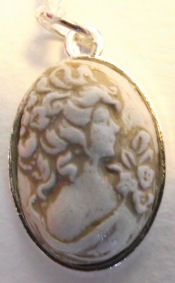 | Pretty little clay cameo set in an 18 x 25 mm frame. Handmade and painted by Brenda@Spooktacula. £7.50 inc UK p&p. Option: smgreycam1 |
