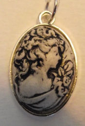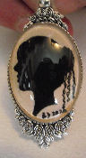 | Pretty little clay cameo set in an 18 x 25 mm frame. Handmade and painted by Brenda@Spooktacula. £7.50 inc UK p&p. Option: smblackcam1 |