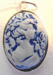 | Pretty little clay cameo set in an 18 x 25 mm frame. Handmade and painted by Brenda@Spooktacula. £7.50 inc UK p&p. Option: smbluecam1 |