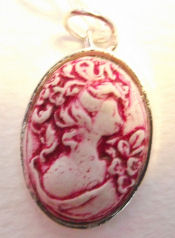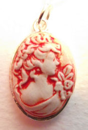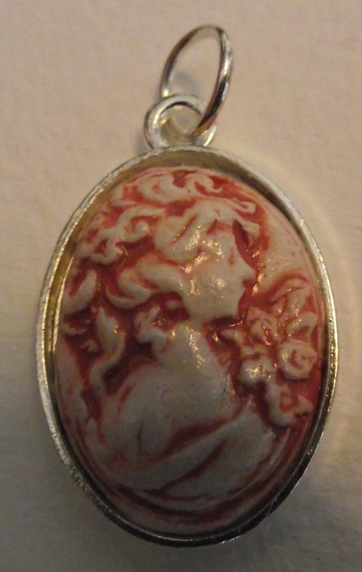 | Pretty little clay cameo set in an 18 x 25 mm frame. Handmade and painted by Brenda@Spooktacula. £7.50 inc UK p&p. Option: smredcam1 |