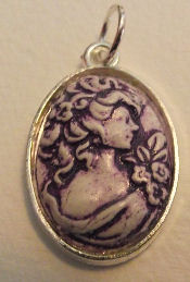 | Pretty little clay cameo set in an 18 x 25 mm frame. Handmade and painted by Brenda@Spooktacula. £7.50 inc UK p&p. Option: smpurpcam1 |