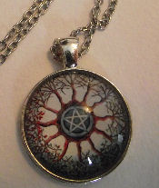 | 25mm glass dome pendant depicting a pentagram surrounded by tiny trees. Comes complete with adjustable chain. £8.99 inc UK p&p. Option: pentpen1 |