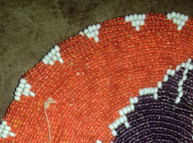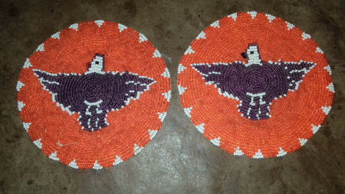 Vintage Native American Thunderbird Beaded Rosettes, buckskin backed. Small amount of damage as shown in photo. Approx 4 inches across